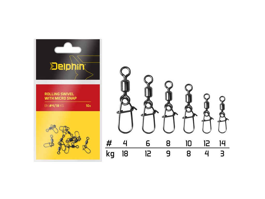 Karabinky s obratlíkem Delphin ROLLING SWIVEL WITH MICRO SNAP použijete v situacích, kdy potřebujete rychlou výměnu rotující nástrahy. Díky použitému obratlíku tak nástraha nezamotá vlasec a karabinka MICRO SNAP se velmi dobře otevírá. Díky šesti velikostem a nosnosti je využijete při širokém spektru nejen přívlačových technik. V balení se nachází 10 kusů.