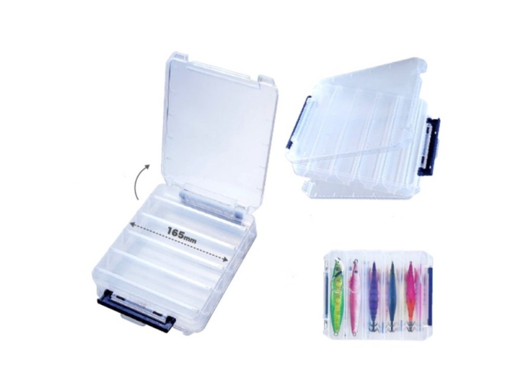Oboustranná krabička na ukládání pilkrů, wobblerů. Jedinečné tvarování přihrádek dovolí uložení wobblerů a pilkrů z obou stran při min. tloušťce krabičky. Materiál: Polypropylen.