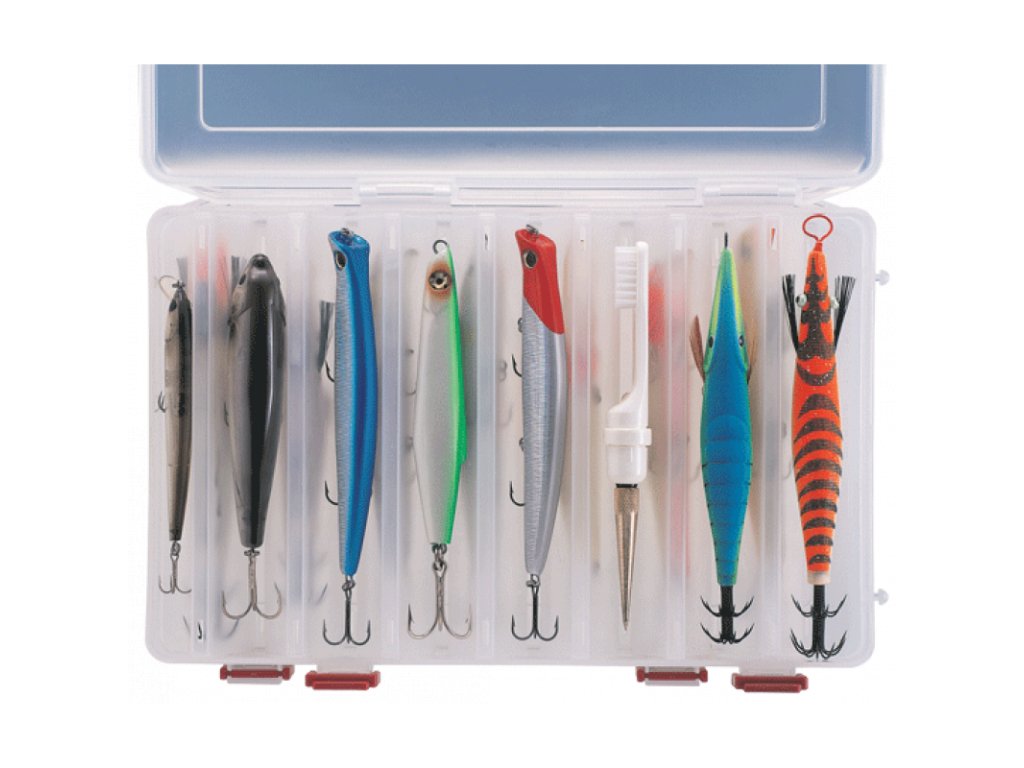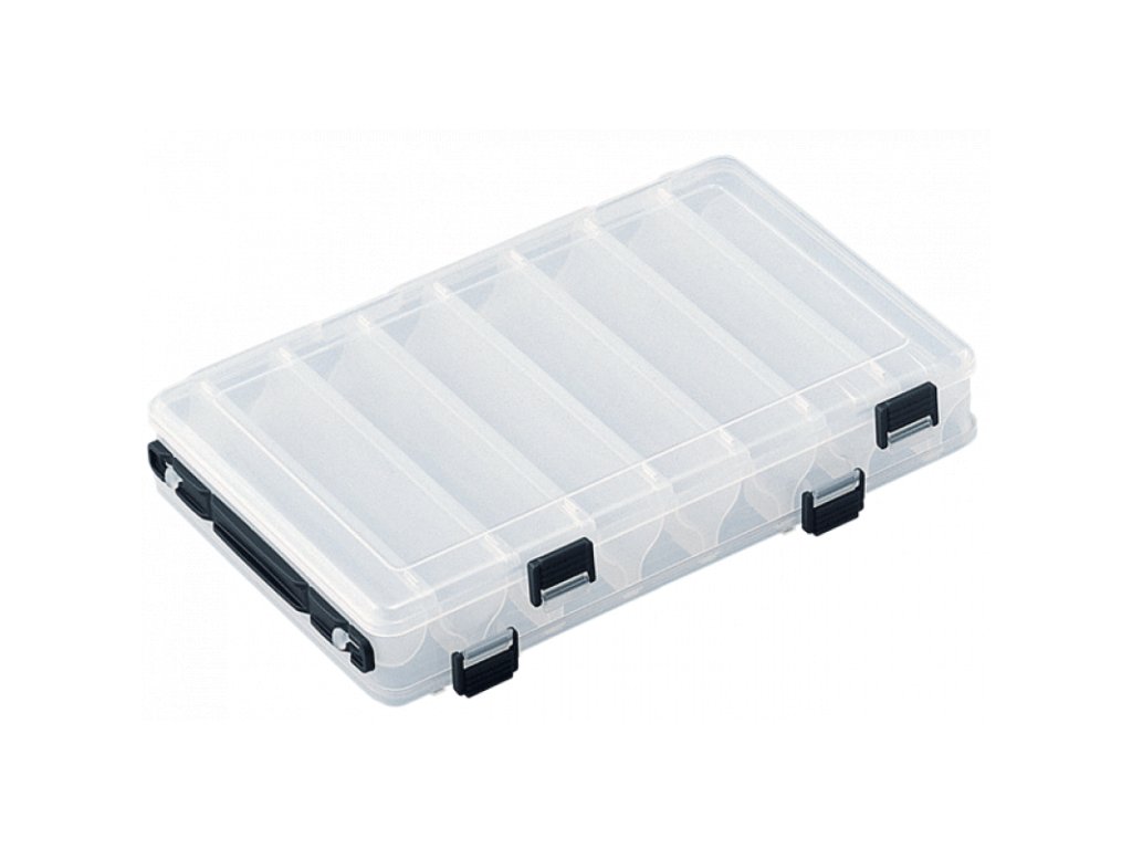 Oboustranná krabička na ukládání pilkrů, wobblerů. Jedinečné tvarování přihrádek dovolí uložení wobblerů a pilkrů z obou stran při min. tloušťce krabičky. Materiál: Polypropylen.