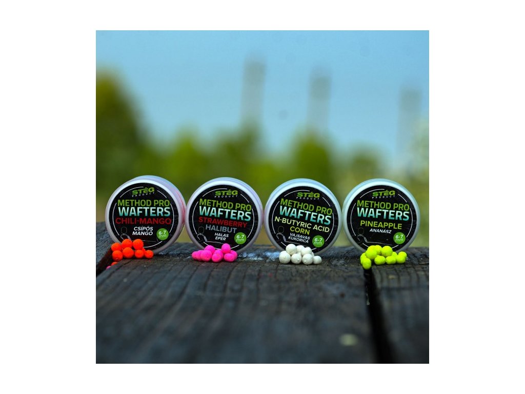 Novinka od maďarské společnosti STÉG - METHOD PRO WAFTERS.  Tajemství úspěchu spočívá v postupném "provoňování" každé kuličky. Nejenže atraktivní esenci obsahuje již samotné těsto, ale kuličky se během pozvolného procesu prosychání ještě postupně několikrát prosycují další dávkou aromátu! Každá kulička je tedy dokonale provoněná a ochucená až k samotnému jádru. Dokud drží na háčku, nemá smysl ji měnit.