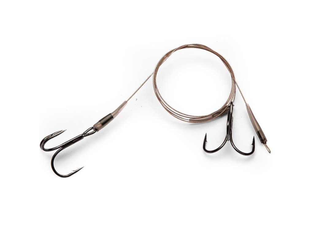 Hotový návazec DB Universal Leader pro lov na plavanou a lov při dně vybavený trojháčky z vysoce kvalitní uhlíkové oceli navázanými na 30lb - 14kg camo ocelový návazec. Velký důraz zde byl kladen na kvalitní zpracování, každý krimpovací spoj je individuálně vyroben ručně a nakonec zkontrolován.