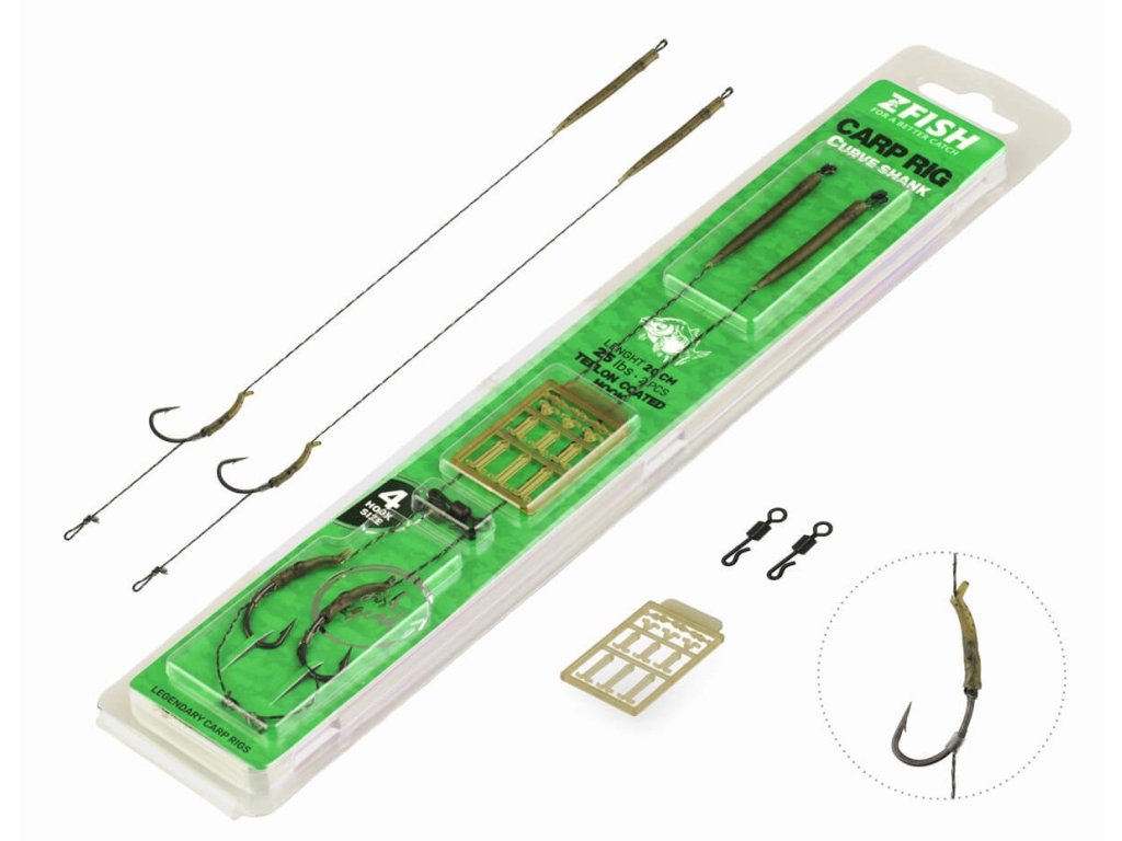 Hotové kaprové návazce s měkkou šňůrkou a superostrým háčkem Curve Shank. Ideální pro rychlou výměnu a přizpůsobení se aktuálním podmínkám. Součástí montáže je převlek proti zamotání a vlasové rovnátko, které zajistí správnou rotaci a s ní spojené přesné zaseknutí háčku. V balení krom návazců naleznete i rychlovýměnné obratlíky a zarážky pro správné nastražení nástrahy. Získáte tak kompletní montáž, se kterou nezbývá než jít k vodě.
