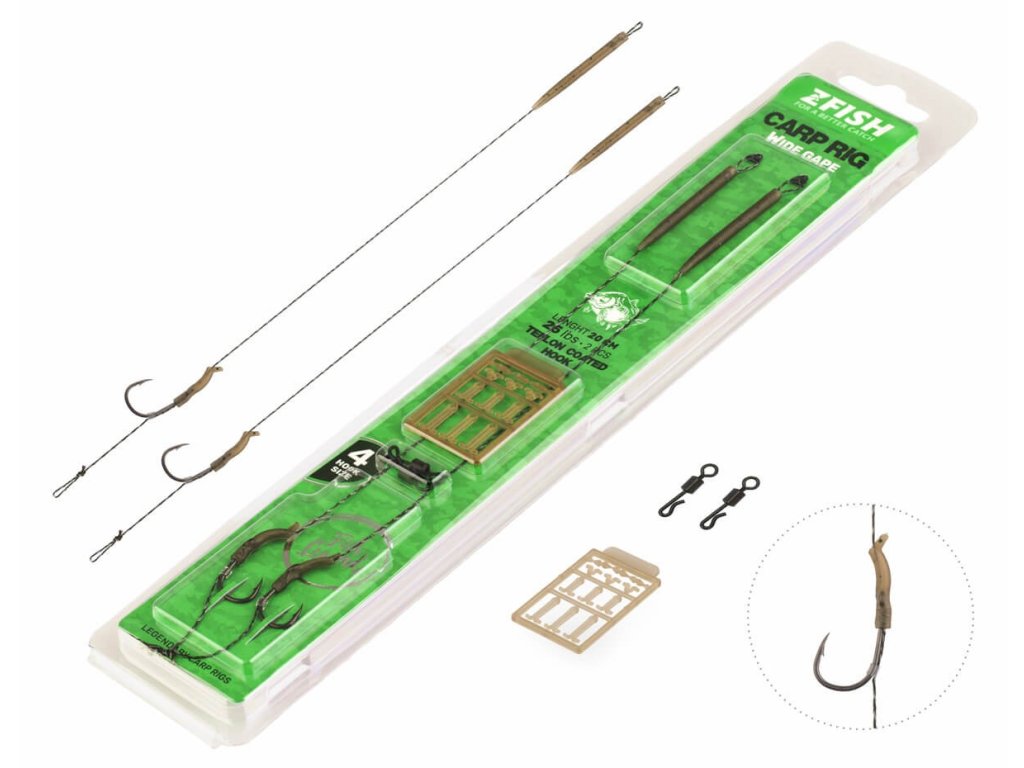 Hotové kaprové návazce s měkkou šňůrkou a superostrým háčkem Wide Gape. Ideální pro rychlou výměnu a přizpůsobení se aktuálním podmínkám. Součástí montáže je převlek proti zamotání a vlasové rovnátko, které zajistí správnou rotaci a s ní spojené přesné zaseknutí háčku. V balení krom návazců naleznete i rychlovýměnné obratlíky a zarážky pro správné nastražení nástrahy. Získáte tak kompletní montáž se kterou nezbývá než jít k vodě.