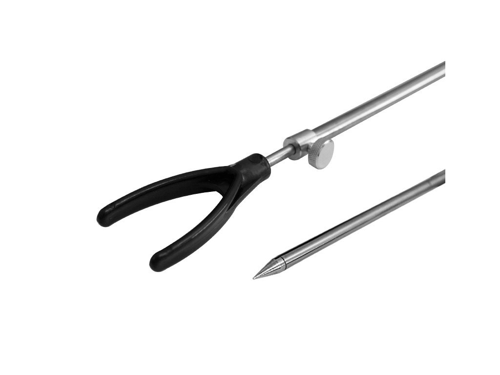 Velmi pevná, teleskopická, přední vidlička s držákem na prut. Vyrobena je z oceli, díky čemuž je výjimečně pevná. Vrchní část vidličky je pevně osazena držákem prutu. Požadovanou výšku nastavíte jednoduše pomocí závitu s maticí, která slouží k zafixování výšky rybářské vidličky.